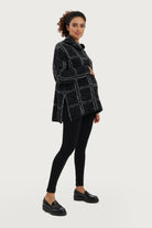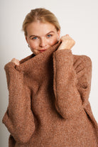 Tunic length (aka wearable with leggings), this slightly oversized turtleneck sweater is done in our cozy jacquard boucle with metallic side zippers for easy nursing access. Designed for during, nursing + after. Tah-dah!
