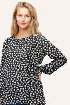 A romantic, flowy blouse that works from pregnancy to postpartum. Available in two beautiful floral prints, this top has a timeless A-line fit and contrast velvet piping that adds a little romance to your everyday look.