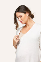 Our Quinn dress is as effortless as it is chic. Dolman sleeves and a wide v-neck that pulls down for nursing postpartum, this dress feels oh so super soft. Pair with tights or leggings for those cold days.